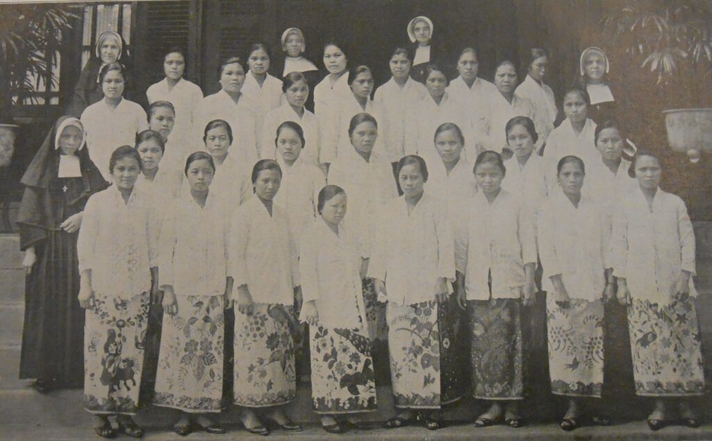 The domestic science course ran by the JMJ sisters in Tomohon, c. 1929. Source: Missies der Zusters van het Gezelschap van J.M.J. in Oost-Indië en Britsch-Indië, vol. 27 (1929) no. 3, p.5. The people in this image do not figure in this article.