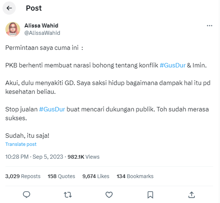 Allisa Wahid’s tweet criticising Muhaimin