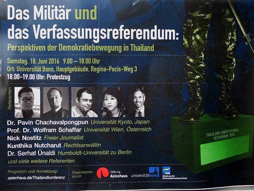 On 18 June, I was invited to talk at a symposium at the University of Bonn in Germany, organised in conjunction with Stiftung Asienhaus and several Red Shirt groups in Europe.