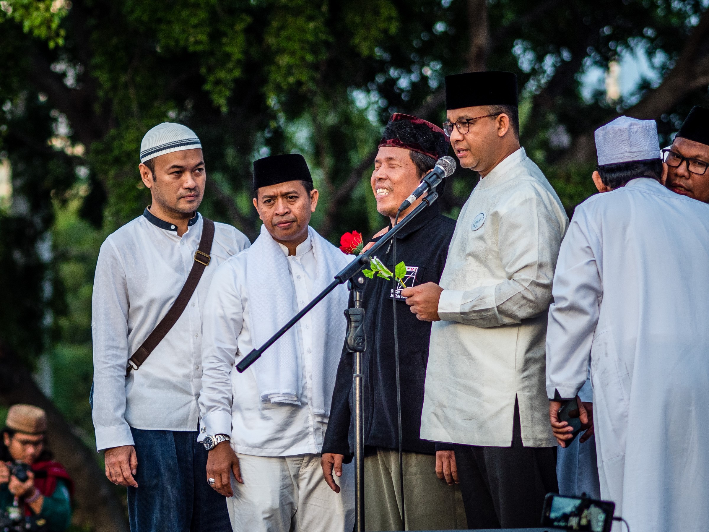 There is no denying that many, if not most, of the 212 alumni uphold interpretations of Islam which in part lead to an exclusionary attitude towards people who fall outside of their pan-Islamic kinship. It is also hard to refute that some of these interpretations come into conflict with the brand of nationalism promoted by Jokowi’s government. Whatever his motives in attending the reunion, Anies Baswedan lent legitimacy to the people he shared the same stage with by doing so. While it may be argued that it’s perfectly legitimate for Anies to endorse Al Khaththath’s aspirational dawn prayer pledge, the space of legitimacy quickly diminished when Anies described Ustadz Sobri Lubis, a firebrand preacher who’d publicly incited violence against religious minorities, as an honourable guest.