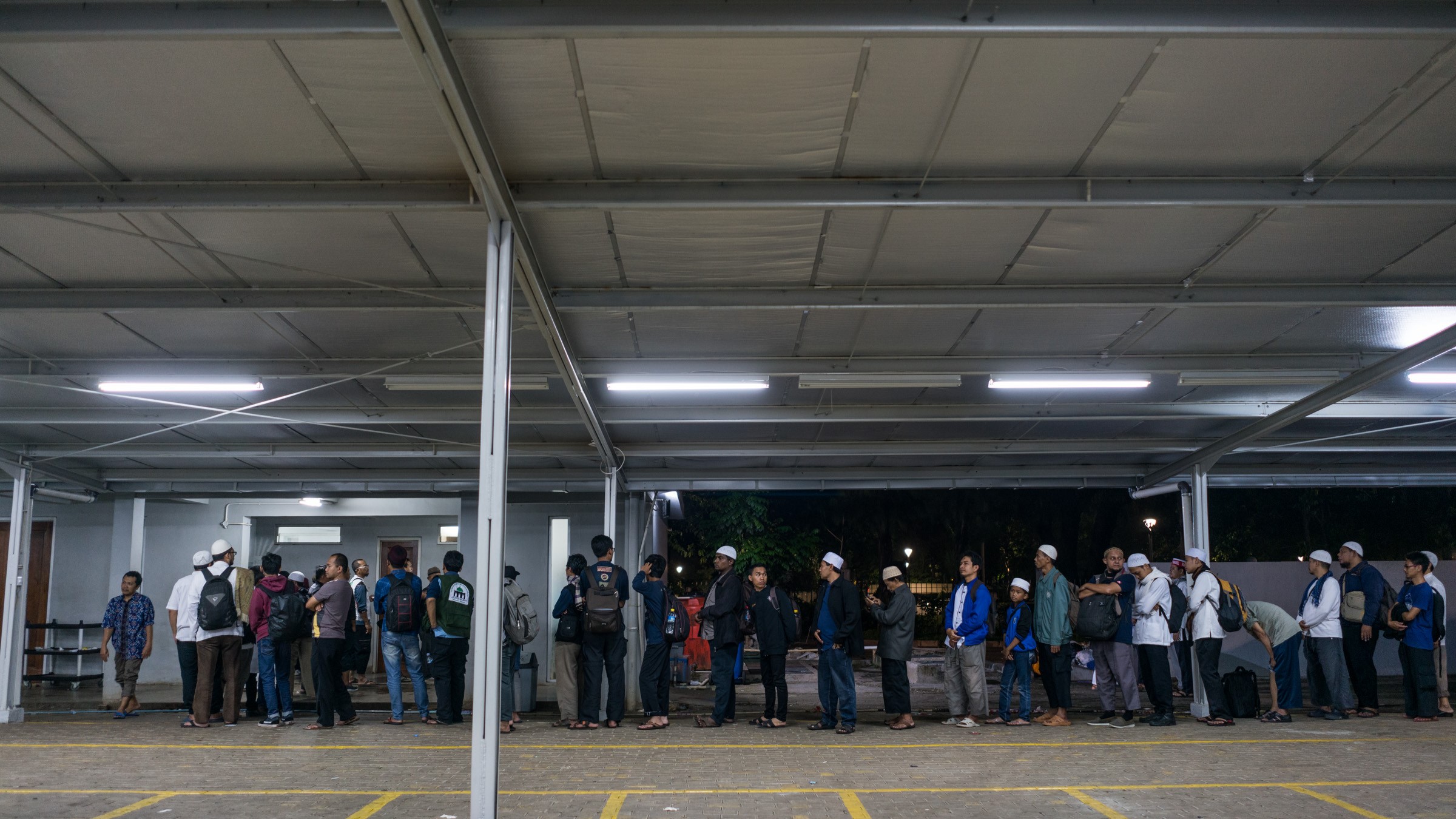 At around 2am, I decided to head back to the Istiqlal Mosque and the Gambir train station area once I noticed the heavier-than-usual traffic flow. During this time, most of the people arriving were members of FPI’s paramilitary wing, primarily teenagers led by a few more senior members in their 20s, arriving by the truckload.
