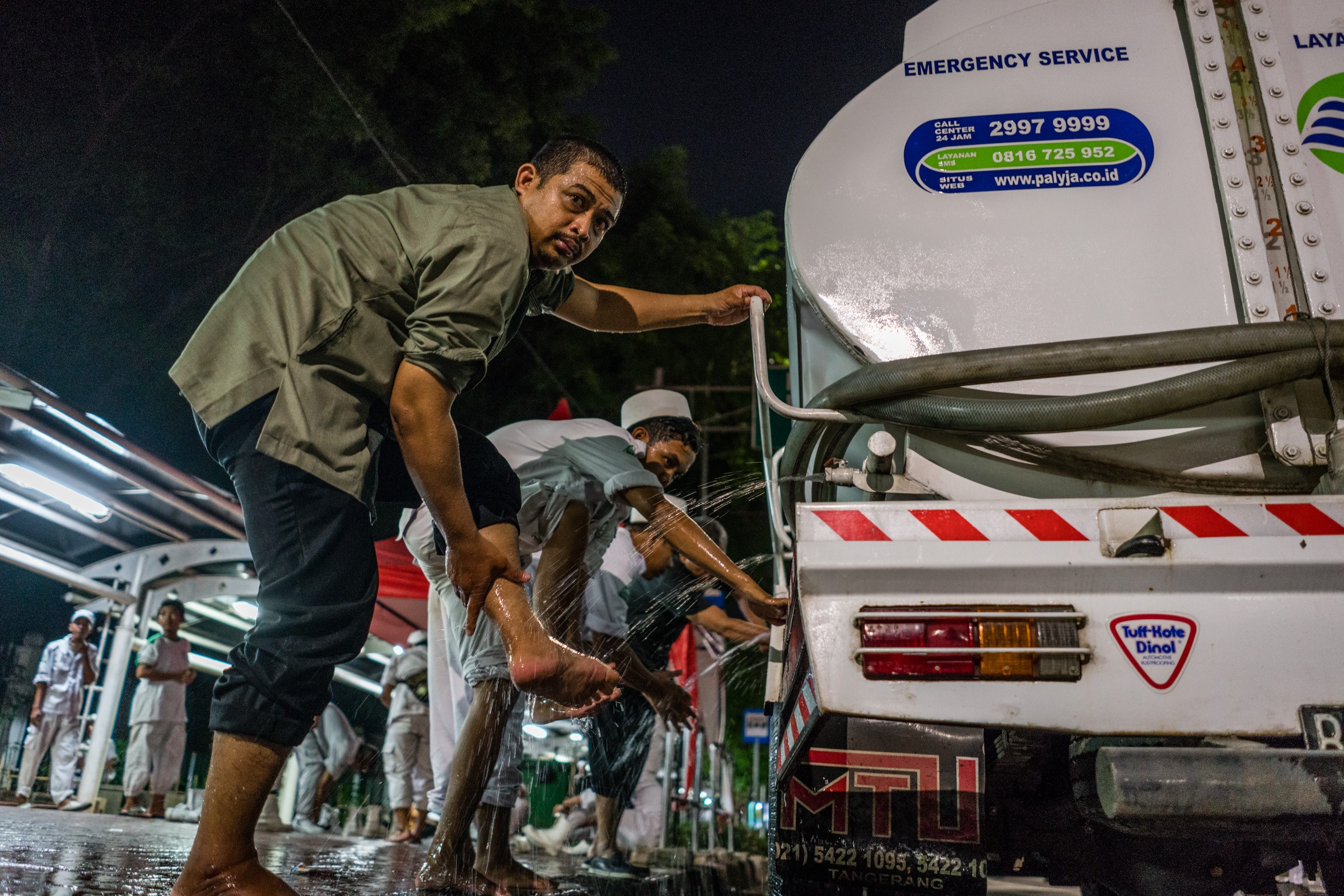 “I regret not attending the previous 212. It was such a missed opportunity. When I heard that there’s going to be a reunion, I knew I had to come. I took the train from Bogor at around 9PM the night before, and by the time I arrived at the National Monument, it was nearly 3AM. Thanks to the water trucks provided by the volunteers, I was able to carry out my ablution without much problem. I quickly found a spot and got ready for one of the most best religious experiences I’ve had, conducting dawn prayer with a congregation of hundreds of thousands of people at the National Monument.”