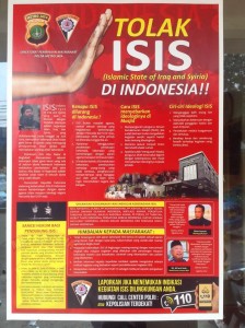 CLICK IMAGE TO ENLARGE. A poster warning of the dangers of ISIS ideology hanging on the front door of a sub-district police station in central Jakarta, September 2014. Photo: Dominic Berger