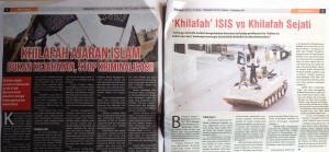 A prominent 2013 publication by a Solo-based publisher associated with JI, entitled Strategi Dua Lengan (The Two-Arm Strategy), was widely discussed amongst Indonesian jihadi’s and makes brief reference to the relationship between non-violent groups like Hizbut Tahrir and violent groups like ISIS. In laying out a roadmap to establishing a Caliphate in Syria and Yemen through violent means, its author notes the ‘important legacy left by the intellectuals of Hizbut Tahrir […] around the idea of the Caliphate’. But despite Hizbut Tahrir’s enthusiasm for the imminent declaration of a caliphate, only weeks later, when ISIS leader al-Baghdadi declared a caliphate on 29 June, Hizbut Tahrir distanced itself from ISIS, claiming that it fails to fulfill certain conditions, such as total control over the territory, and the provision of security to the population living under it.