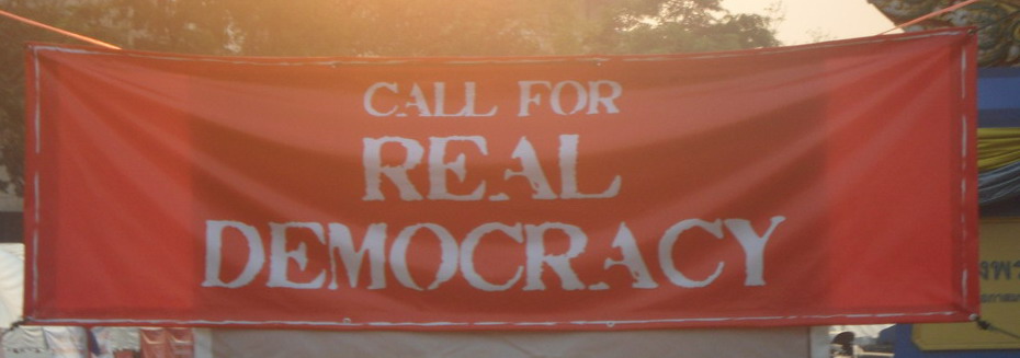 Readers of New Mandala may have seen my previous posts on the uses and meanings of English in Thai politics which dealt with English as an alternative space, an arena for contested translations, and an arena of coded language in response to censorship. Some of these areas merge in the phenomenon of signs in English at Thai political demonstrations. Why and how is English used here? An interesting New Mandala analysis and photo essay compares the use of signs in general at demonstrations in Taiwan and at the People’s Alliance for Democracy (PAD) demonstrations here. Another photo essay here looks at a range of PAD signs and specifically addresses the question of English signs.