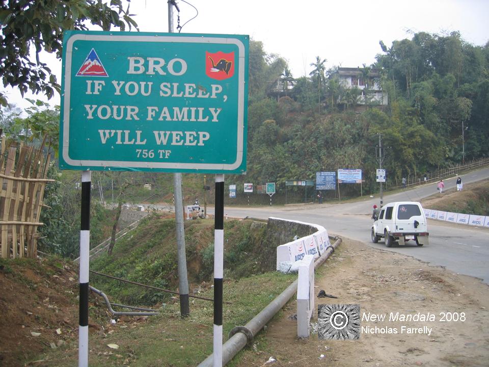 One of the many road safety messages that line roads in the mountains of northeast India.