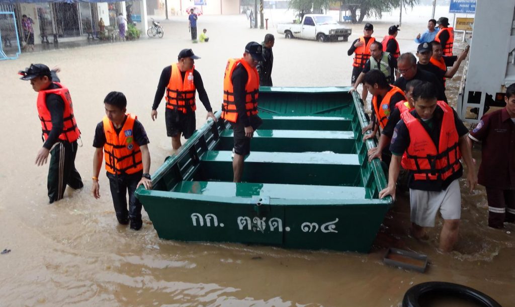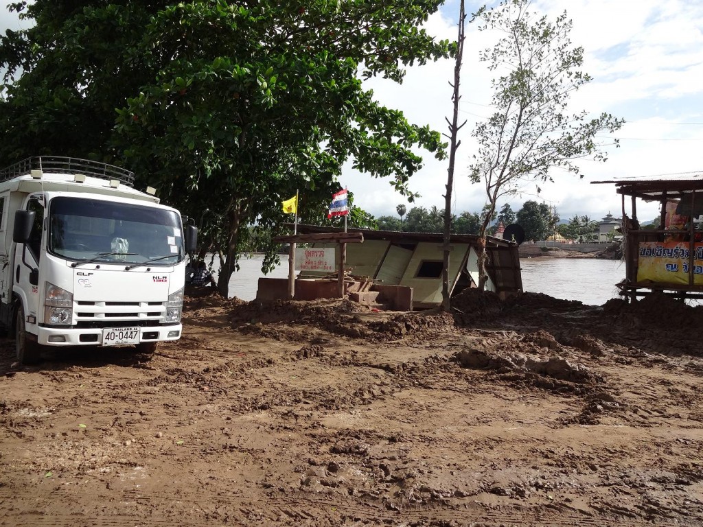 On 29 July, as the heavy rain continued, the Moei broke its banks and the flood-waters began rising rapidly, Chaiwarut supervised the rescue operations from a relatively dry spot under the Friendship Bridge. His first task was to a get a BPP boat into the water, with a crew trained in rescue techniques. Many people were saved from life-threatening situations on both sides of the swollen river.