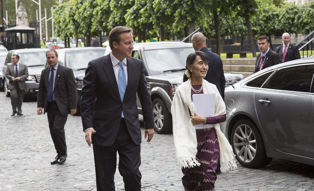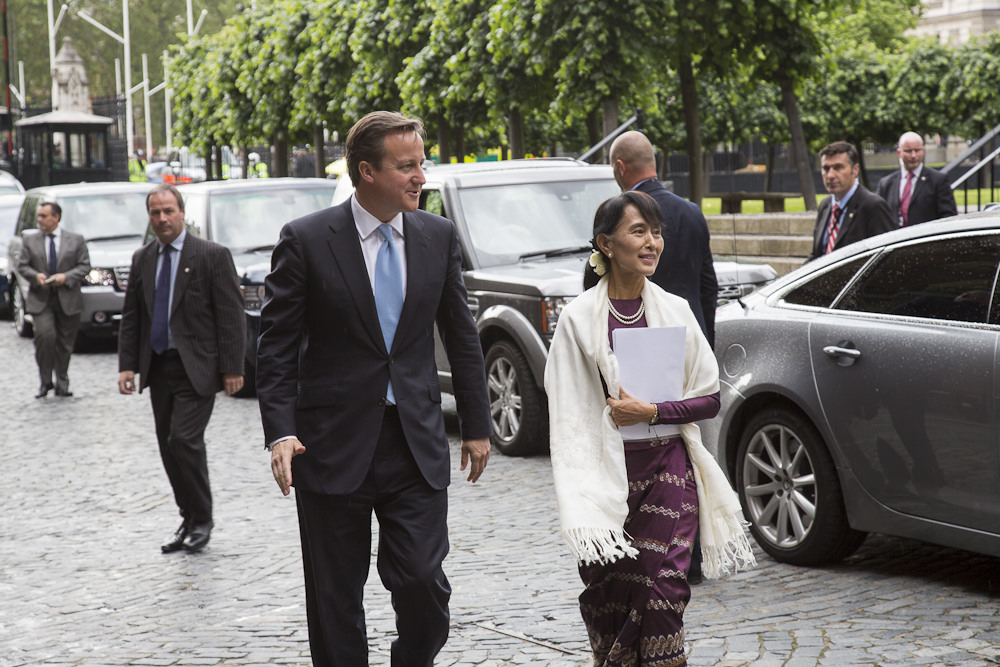United Kingdom PM David Cameron meets with Aung San Suu Kyi.