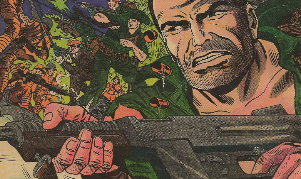 In US war comics, by contrast, the plots involving Burma tended to be more far-fetched, the action more extreme, the dialogue more improbable and the heroes less believable. Warfront Comics (1951-67), for example, trumpeted the exploits of the ‘Lone Tiger’, who flew solo fighter missions against the Japanese. ‘Sergeant Fury and his Howling Commandos’ (Marvel Comics, 1963-81), wreaked mayhem along the Burma Road while ‘Captain Savage and his Leatherneck Raiders’ (Marvel Comics, 1968-70) conducted equally unlikely operations. In a 1971 comic, ‘The Losers’ escaped a tiger and trekked through Burma’s ‘dense fetid jungle’ to attack a Japanese base, helped by an elephant.