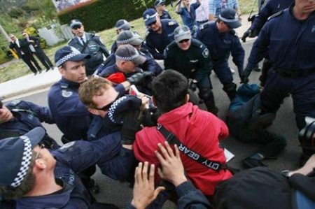 It’s not Rangoon but democracy loving Canberra. The Sydney Morning Herald (the source of this photo) reports: