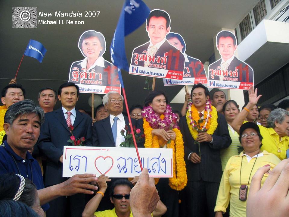 Boonlert served on the first Senate in the year 2000. Khun Inthira used to be an opposition member within the Chaisaeng’s municipal council of Chachoengsao. The ran for the provincial council in 2004 under the TRT banner, being a member of Suchart Tancharoen’s group. However, she actually is a follower of the Democrat Party, and one of her brothers ran under its label in 2001. During the election of 2005, she and a number of Suchart’s provincial councilors had helped Boonlert put pressure on the TRT candidates, via a special Senate election observation committee. When I attended one of his meetings in the provincial hall at that time, he somewhat brusquely quizzed me about what I had to do in the room. Later, he invited me for lunch, which I politely declined. When I met Khun Inthira at the market a few weeks ago, she had hopes that the Democrats would field her in constituency 2. This did not work out. She then tried Matchimathippattai, but this took too long. Only last Friday, she received the confirmation letter from Ruam Jai Thai Chart Pattana. So much for the importance of political parties in constituency elections, one might say.