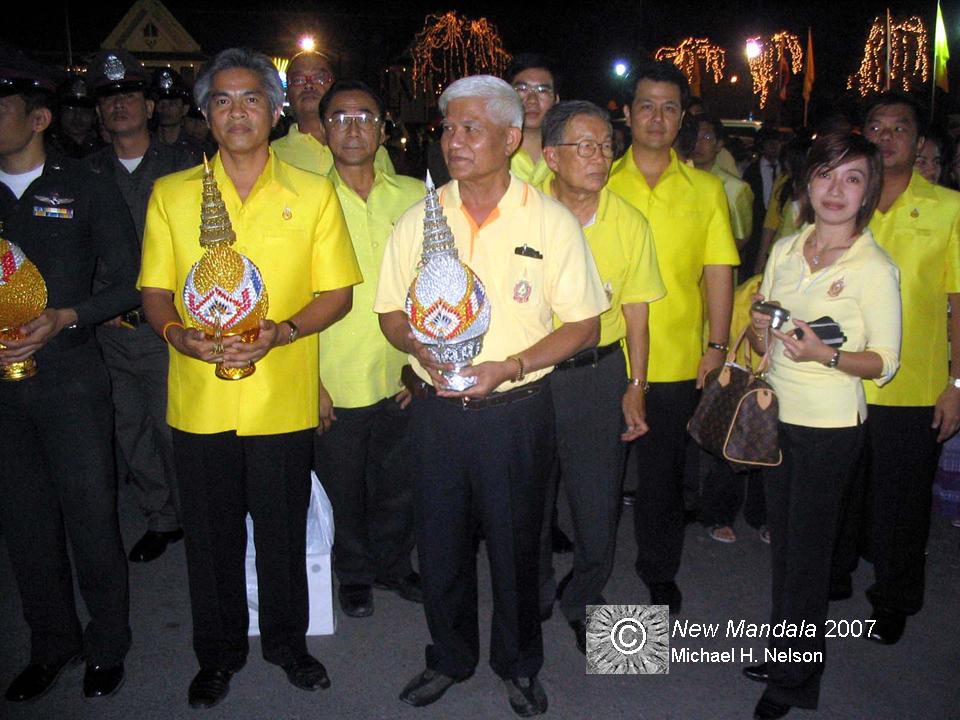 Although this was a ceremony of and by the state bureaucracy, the seating plan also reserved three chairs for former Members of Parliament, for the executive chairperson of the provincial administrative organization (PAO), and the municipality of Amphoe Mueang. Thus it happened that in the left-hand front row next to the governor’s seat, there were two vice governors framed by three Chaisaengs, led by the family patriarch Anand, and their ally from the PAO. As far as I could see, no other national or local-level politicians or office holders were present.