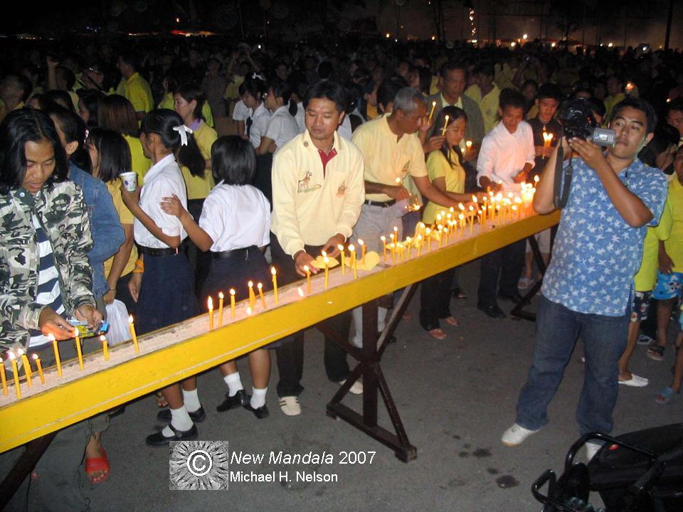 Ordinary people then placed their candles in sand containers placed in front of the stage (picture 17). On the right is a cameraman from a local cable television station. I joked to him that we were amongst the very few people at this event who did not wear yellow shirts. He laughed and said that he had been assigned to cover this event on short notice, with no time to change clothes.