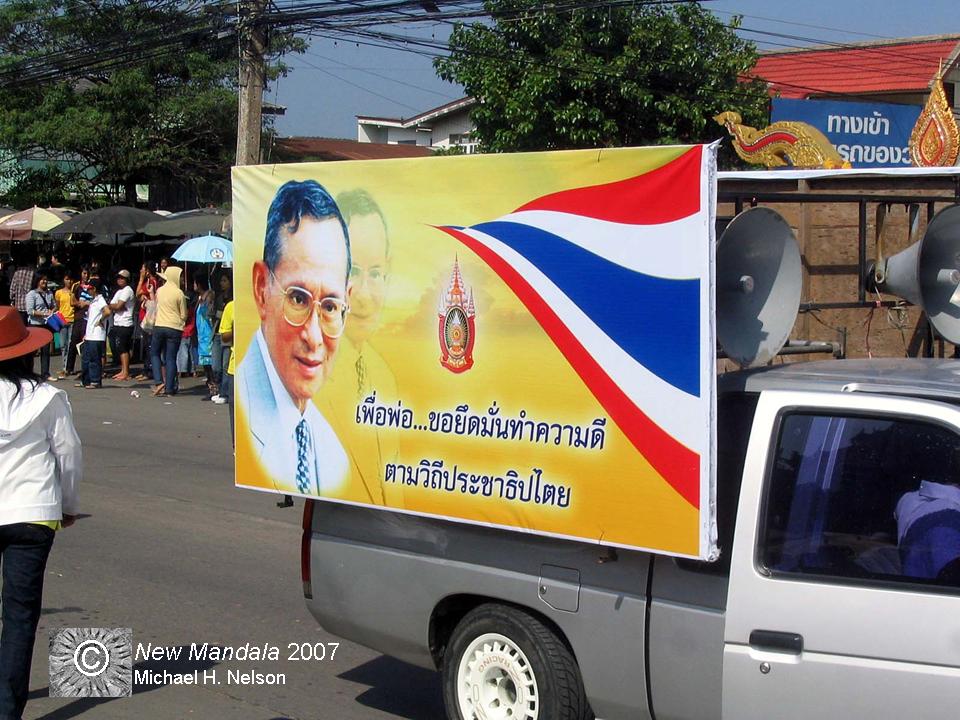 This slogan is reminiscent of the one used in the anti-vote buying campaign after the coup of 1991. At that time, the main slogan was, “Selling your vote, selling your right is like selling your life, selling the nation.” Again, democracy alone is deemed insufficient to convince MP candidates and voters that they should refrain from some sort of actions. But this time it is not the peoples’ love for the King that should motivate them. Rather, they should act in the required way out of their love for the country. Thus, in one instance we have the “Nation” element of the trinity that should lead to clean elections, while in the other case the element of “Monarchy” is supposed to do the trick in a broader sense. Trust into the civic nature of politics in a democracy, it seems, is in short supply, perhaps for some reason.