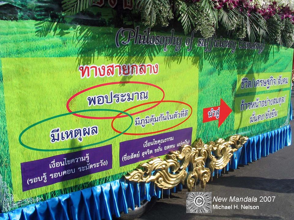 The message says that following the middle path will lead to balanced, stable, and sustainable progress. As pictures 5, 6 and 7 demonstrate, a more fancy and colorful approach was more in line with the general atmosphere of the event than dull and grey moderation.
