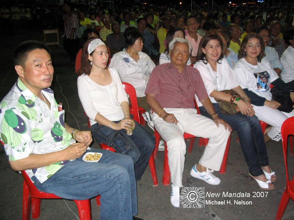 Of course, one of the prominent participants, who did not have to be mobilized by any special incentives, was Chaturon’s father, Anand Chaisaeng. Picture 3 shows him framed by the wife of his mayor-son (right) and her sister (left). The other man in the picture used to be a provincial councilor and was the failed candidate of the family in the Senate races of 2000 and 2006.