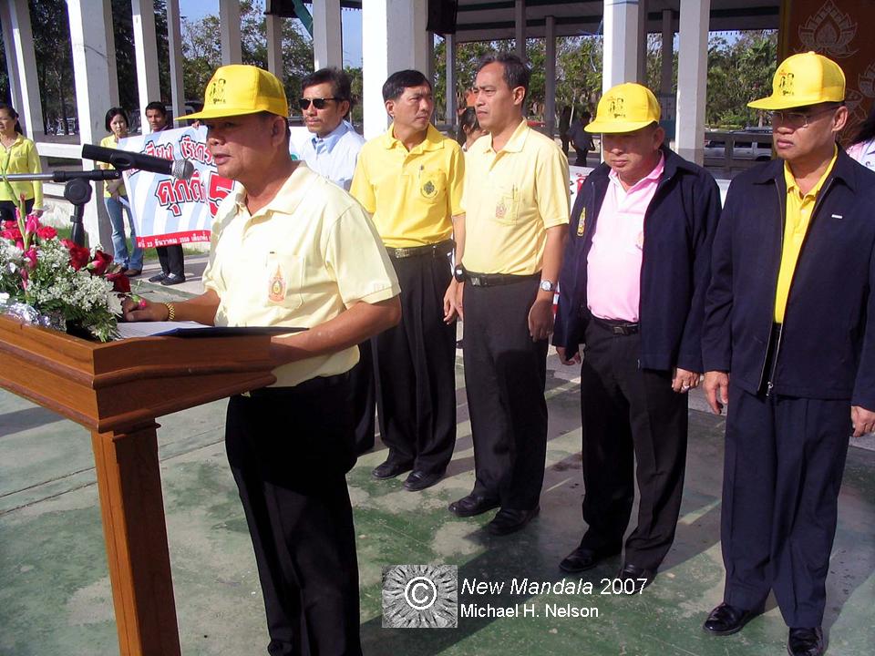 Obviously, one might ask why the PEC had felt the necessity to invite the governor to open its event. Is the ECT, and thus its PECs, not an independent constitutional organization outside the central state’s executive, including its provincial branches, which are headed by governors residing in the provincial halls? But, then, the PEC’s offices are located in the old provincial hall, and the commissioners and the office staff are all well-embedded in the provincial-level civil service culture. From this perspective, the governor is the highest state representative in a province, for which reason it is an honor to have him preside over one’s function, and one must also give him honor. As a result, a big part of all provincial governors’ work is presiding over all sorts of ceremonies. This also includes the private sector, after all, even nowadays newspapers often refer to governors as “pho mueang“-the father of the province.