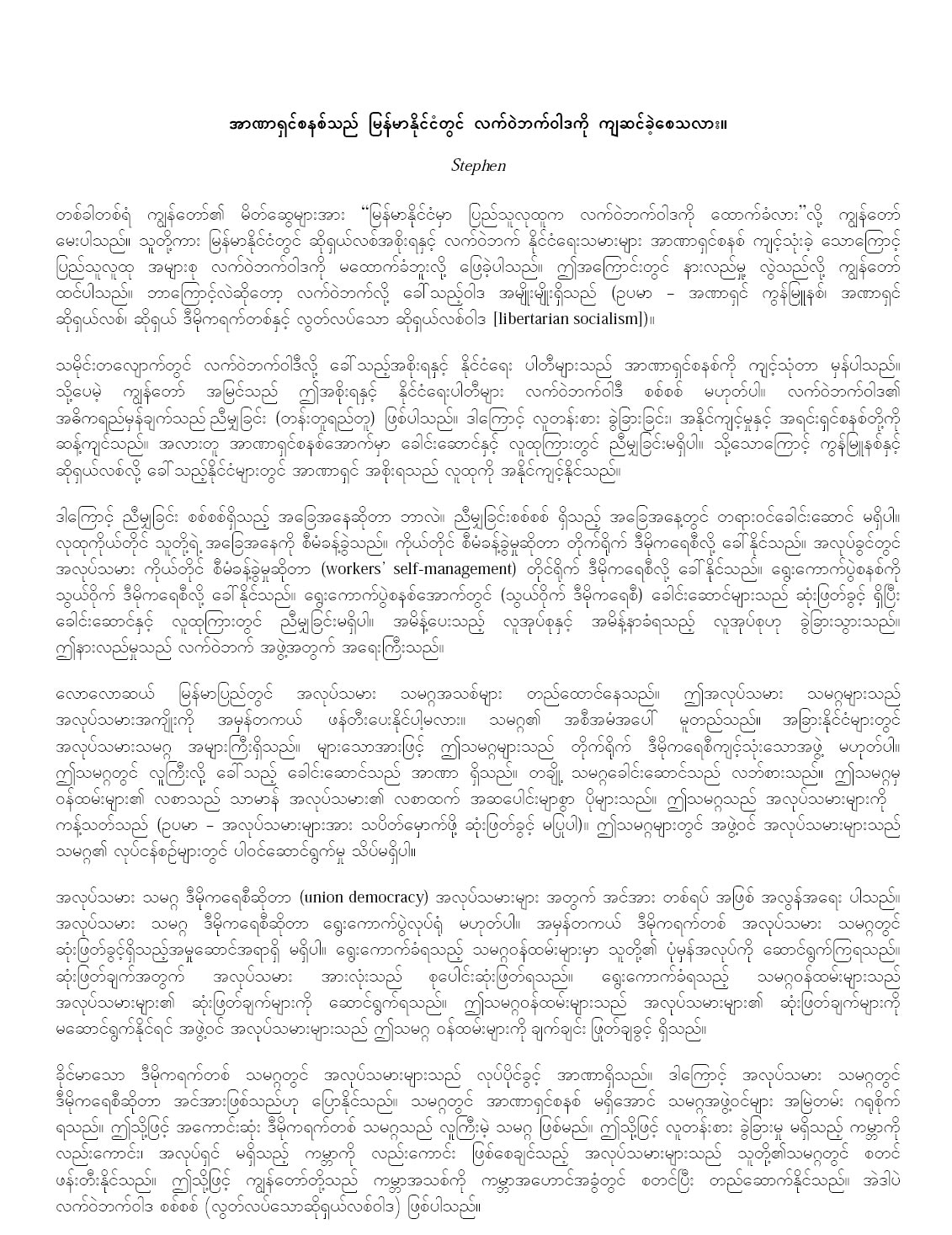 I find that roughly translated ” the best (workers ) democratic union is the lu-gyi-less ( no one to give about orders) one” to be so true.