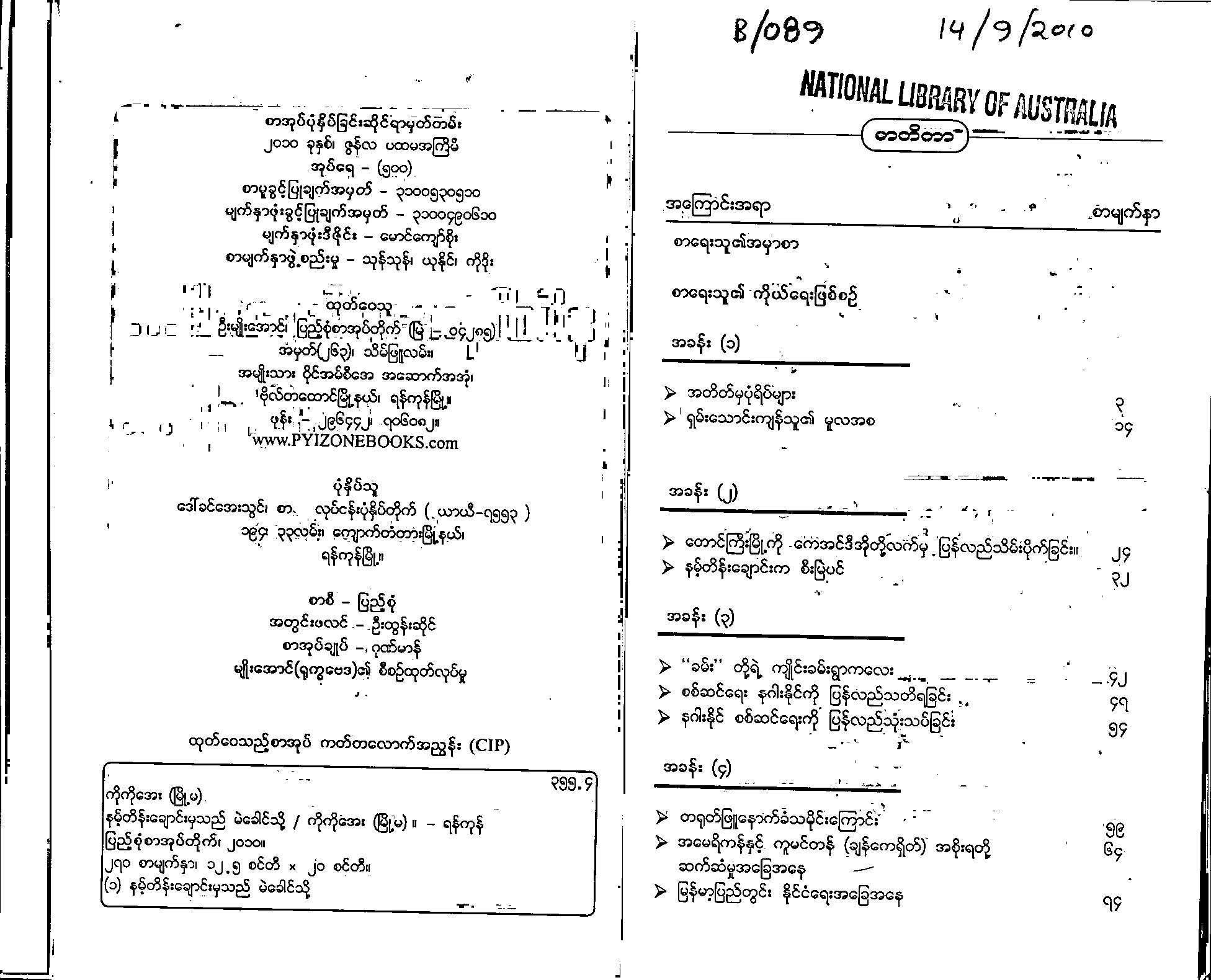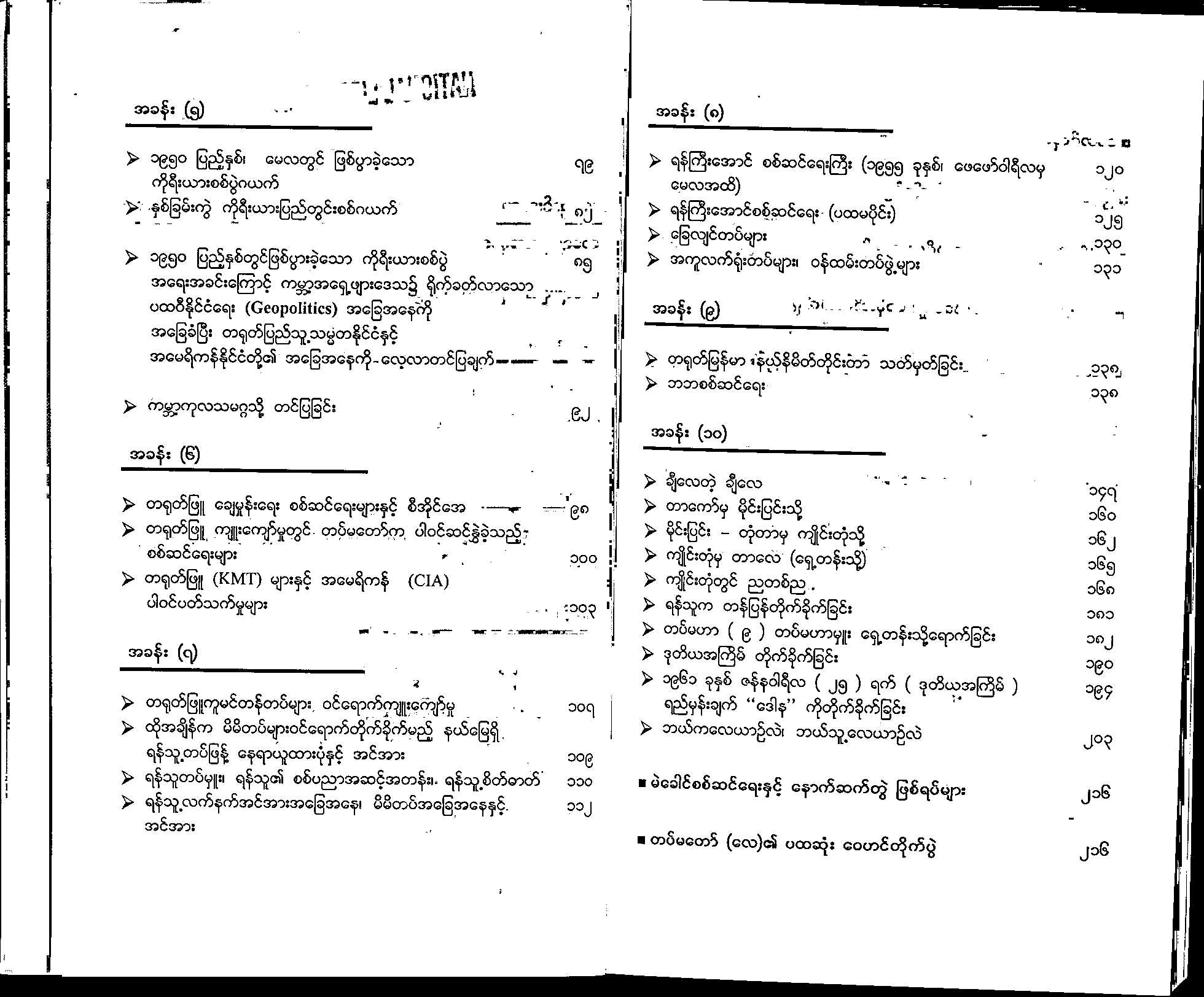 “Is it possible to post a table of contents for the Major Tint Wai Aye book?”