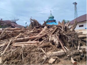 The flood arrived with layers of debris carried from upstream (trees, sand, soil, and sludge) in Garoga, Batang Toru Sub-district, South Tapanuli. Photo- Arrum Harahap