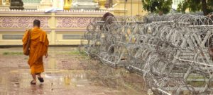 monk and barbed wire