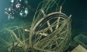 But in 2013, these same divers began to report the presence of a large crane on-site, equipped with a salvage claw. Commercial barges were also seen in the area, laden with corroded scrap metal. Regular visitors were well-positioned to report on the extent of the salvaging, noting significant differences to the wrecks between dive seasons. Video footage suggested that much of the ship’s superstructure – including the bridge, the guns from the upper turrets and much of the deck – had been removed.