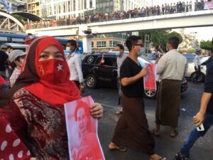 5.A protestor carries an image of ASSK