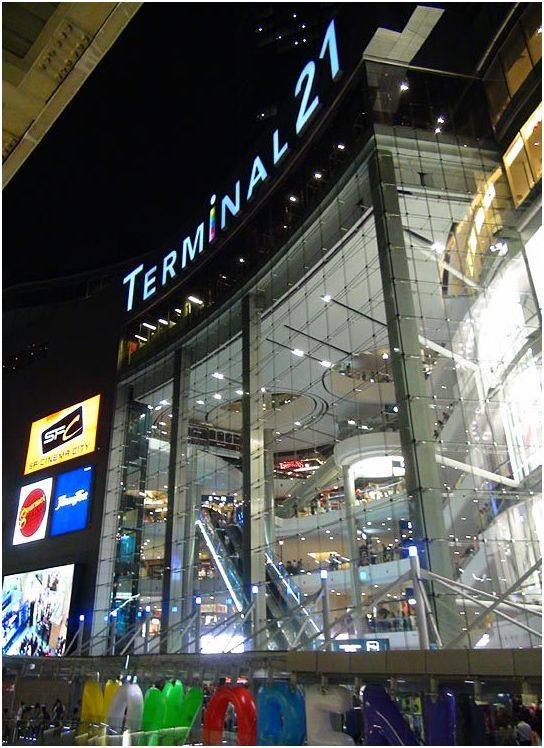 Bangkok is still in the midst of a real estate/building frenzy……a kind of boom……less than 1 percent unemployment rate as well as hundreds of new hi-rises (condos, office towers & shopping centers) going up in every direction…..this new shopping center, called Terminal 21, is a block from my place and opened a few days ago…..30 state-of-the-art digital cinemas, vast & yummy food court, tens of thousands of people from all over Thailand, Asia and the world…..all this despite Thailand’s political chaos and the severe recession in North and Europe over the past few years…..