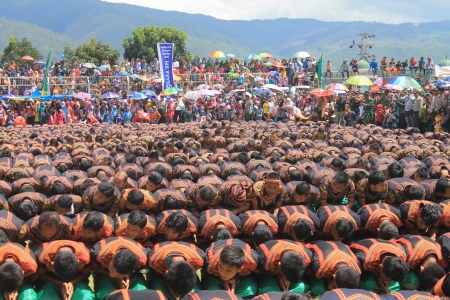 When we finally reached Blangkejeren, 10 hours after we started our journey, we were greeted by friends Joe Samalanga and Iwan Amir. Joe, a renowned Gayo journalist-artist, and Iwan, a researcher and ethnomusicologist, had travelled from Banda Aceh, driving for 2 days, braving landslides, mudslides and heavy rain. We were all there for a common purpose: to witness a historic mass performance of the Saman, Gayo Lues’ famous traditional sitting-dance, that was to take place the next day. In 2011, Saman was designated by UNESCO as ‘intangible cultural heritage in urgent need of safeguarding’. Earlier this year, UNESCO presented its certificate to the Government of Indonesia and the Provincial Government of Aceh, and the Bupati (district head) of Gayo Lues declared 24 November 2014 as “World Saman Day” and announced a mass Saman performance with 5005 Saman performers from the local communities.