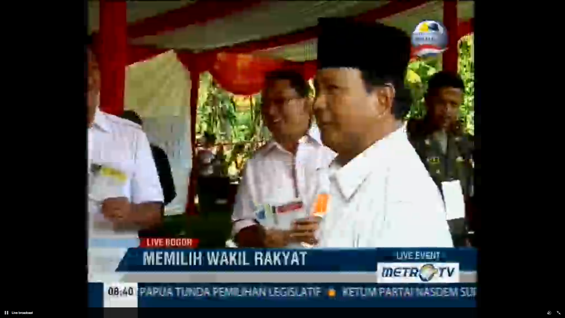 13:45 Jakarta time (WIB) With 0.65% of quick count data in, we’ve got a trend on Indikator’s numbers for Metro TV. PDI-P: 22.09%, Golkar 13.67%, Gerindra 12.81%, Demokrat 10.01%.