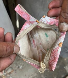 Caption- A construction worker shows his stash of methamphetamine (author photo)