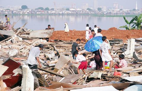 Squatters on Pluit Dam were relocated and their homes demolished to make way for a new green space. Many praised Jokowi, but others noted that some residents continued to resist relocation.