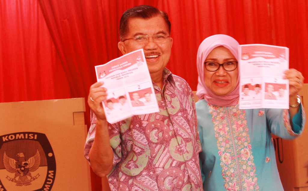 Of course there’s no way you missed this earlier, but showing solidarity with his running mate, Jokowi casts his ballot.