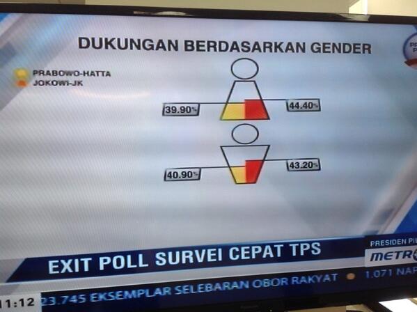 But remember; the problem with exit polls is large segment which declines to answer, for a number of reasons. Quick counts based on actual votes. Can’t wait for CSIS quick count press conference at 3pm.
