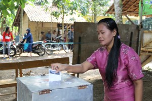 Far from the big city, Jacqui Baker points out the almost German World Cup-like efficiency of voting in Mekar Sari.