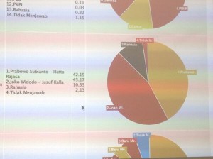“They have Jokowi-JK at 45.17 to Prabowo-Hatta’s 42.15. The remainder of voters did not respond or kept their choice secret. Jokowi-JK are also on the way to victory according to Populi, which has a gap of almost 10% between the candidates with 20% of the vote counted.