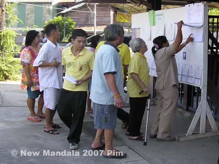 Meanwhile, on election day, in a village in Amphur Na Dee (Prachinburi), a headman told me that removing people’s names from the roll was ordered by “higher ups” who wanted a big percentage turnout. This was said to have been a problem during the constitutional referendum. The headman said he’d been told that the higher the turnout, the more democracy there was. So they removed as many people as possible because they had a target turnout figure to meet.