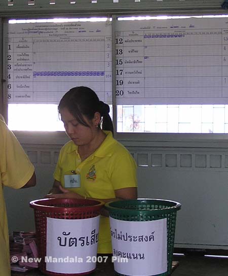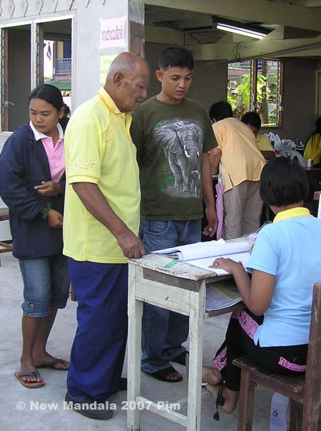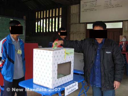 From RK in Chiang Mai, 23 December. Voting is proceeding smoothly in Baan Tiam, a small village about one hours drive from Chiang Mai. The vote is overseen by a committee made up of local villagers and external representatives (mainly school teachers and some police). Here are some images from the booth.