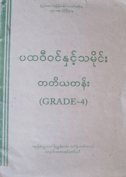 Whatever the case may be, improving the material quality of textbooks, while it might make some primary schoolers’ lives easier, is likely to meet with criticism. Indeed, the Ministry of Education exposes itself to parody with this announcement. To refer back to the headline quoted above, does the Ministry of Education really want to remind readers that high-quality paper must be “foreign-made”? How can patriotism be drummed up in an environment where “foreignness” is code for both “better-than-Myanmar-quality” and (at least until recently) for “external destructive elements”? Is “foreign-made” paper the best advertisement for educational reform in a country that has recently been flooded with foreign NGOs, foreign capital, and foreign “expertise”? CESR itself, funded by international organizations and governments including AusAID and the Asian Development Bank, has been criticized by the NNER on the grounds that it does not accurately represent the views of rank and file Burmese teachers and students. In the 1920s, schools were a wellspring of anti-colonial sentiment, and the suspicion of foreigners is fomented in history textbooks to this day. The irony of nationalist messages printed on foreign-made paper illuminates the tension between longed-for modernity and carefully-guarded tradition, between schools as sites of 1984-esque indoctrination or 21st-century empowerment.