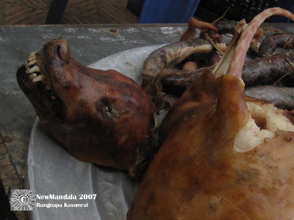 New Mandala reader Rungnapa Kasemrat has sent me this image from the Vietnamese town of Van Phuc (famous for its silk production.) Travellers in Rungnapa’s group were pleased to learn that, given the high price of dog meat, substitution in any of the nearby restaurants was very unlikely! From my experience they were missing out on a treat.