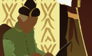 DALL·E 2024-03-01 10.51.25 – an abstract image of a burmese king receiving a report from a spy