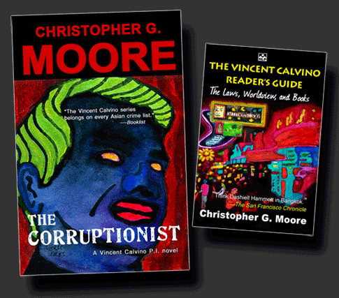 Both Chris Coles and Christopher G. Moore will be on hand for the Opening Night Friday, December 11th, starting at 6:30PM, and both will be signing the two latest Christopher G. Moore books, The Corruptionist and The Vincent Calvino Reader’s Guide, which feature Chris Coles’s paintings on their covers.