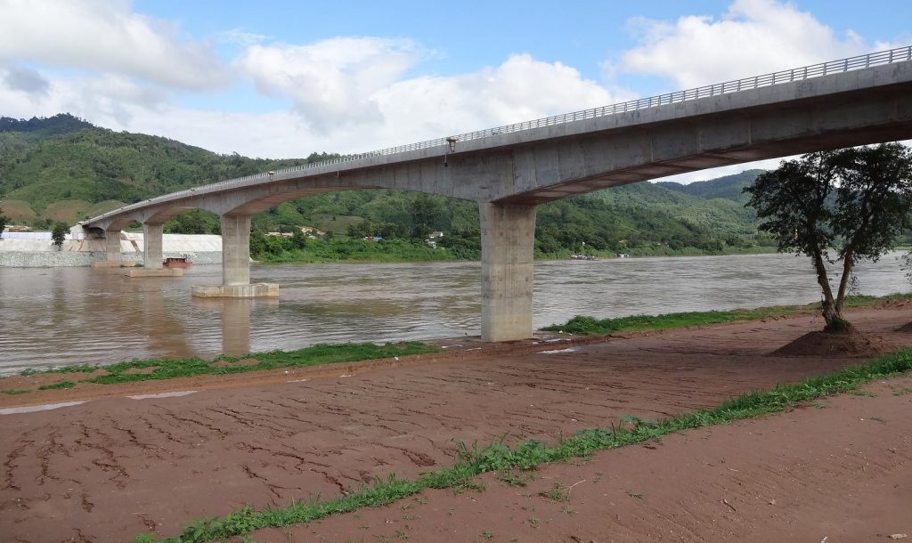 After many premature reports, the new bridge across the Mekong River linking Laos and Thailand is now very close to being opened to traffic. Located about six kilometres southeast of the twin-towns of Huay Xai and Chiang Khong, the fourth Friendship Bridge across the Mekong measures 630 metres long and 14.7 metres wide, providing two lanes each way. The access point on the Thai side is at the small village of Ban Don Mahawan. The site was visited by the authors on 12 July 2013.