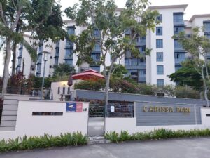 (The side entrance to one of the many condos along Flora Drive, walled and gated with signs warning non-residents against entry)