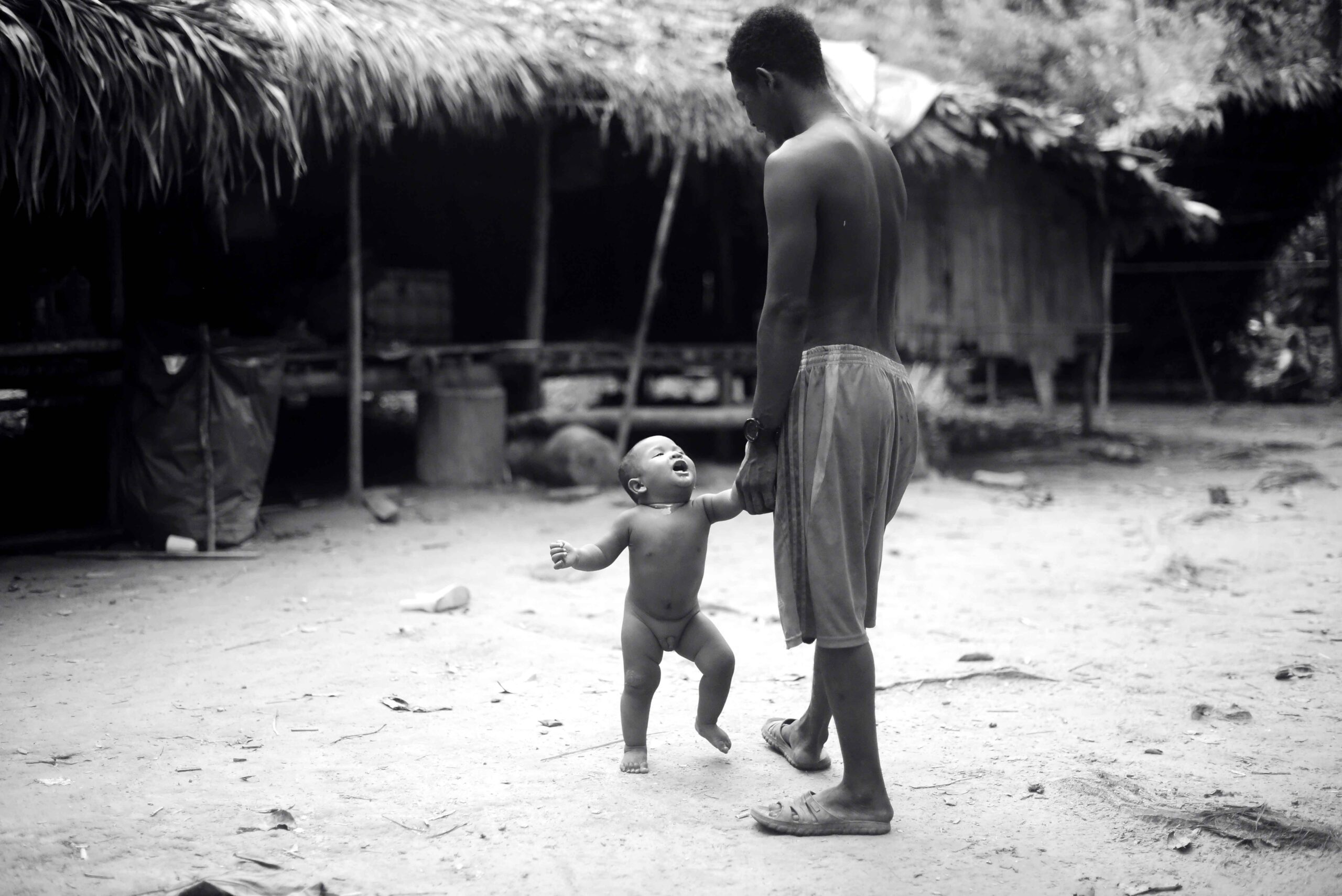 Fig 1. Local idioms of kinship are often discounted in national histories. A Batek child asks his uncle to pick him up, 2020. [Photo by Lye Tuck-Po]