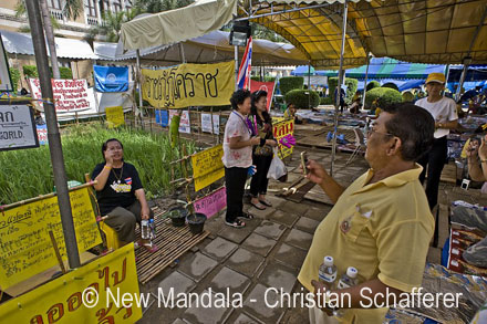 While walking through the PAD territory, I could not but notice that most participants were middle-aged women. When I told one of the PAD supporters about my observation, he noted that PAD defends women’s rights and seeks gender equality. Asked whether this equality was also represented in the composition of PAD’s leadership, the supporter started to talk about the injustices Thaksin and his followers had imposed upon the poor people of the country.
