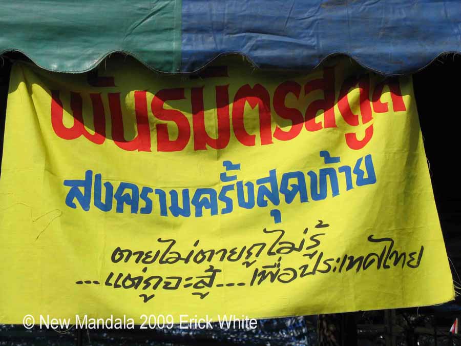 While I talked to maybe a half dozen or so individuals, I was mostly focused on creating a visual record for posterity’s sake of one slice of the contemporary political moment. It turned out, of course, to be a rather serendipitous decision, as later that afternoon the PAD decided to end their occupation of Government House and shift the emphasis of their public protests to the occupied airports. I hope the following selection of photos will be of some use to those individuals in the broader Thai studies community who are interested in examining the political imagery and rhetoric of the last two years.