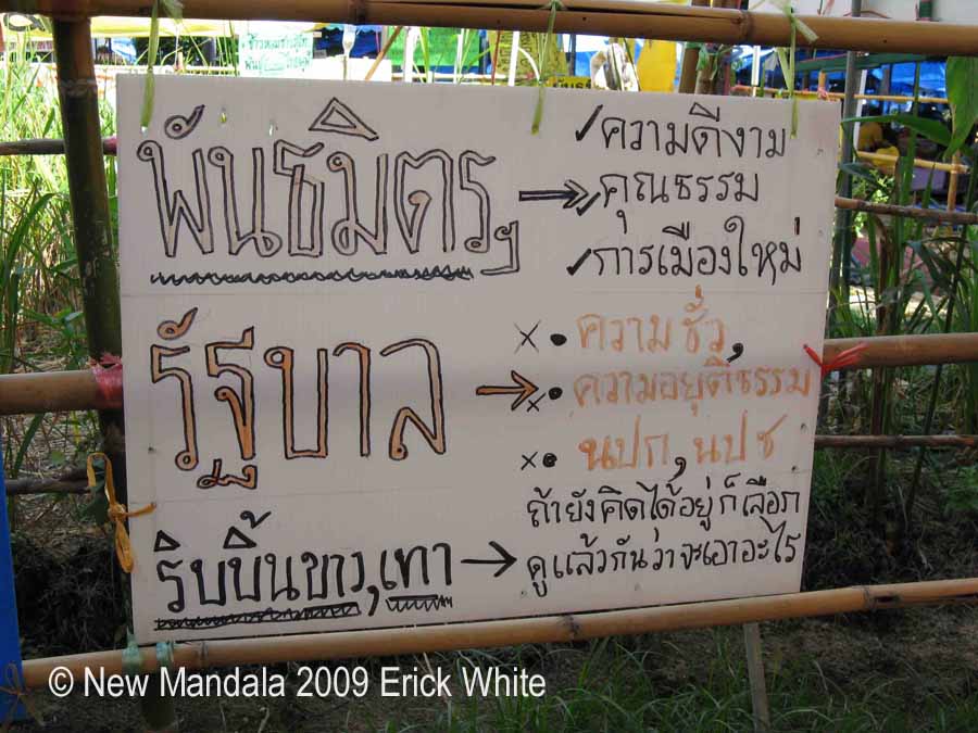 In the area around the main entrance to Government House there were a considerable number of posters and art that contained solely or primarily English. They were clearly designed to try to translate the PAD’s hopes, fears, arguments and complaints into terms understandable to an international audience, as can be seen in the first two photos. There were also some posters that were more solicitous and tried to counter critical foreign reactions to the movement’s goals and strategies, as is evident in the third photo.