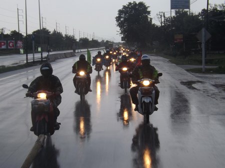 The caravan begins the 600+ km. journey in Chiang Mai. At this point, the group consisted of about 50 motorbikes driven by Chiang Mai farmers and stateless persons.