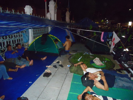 P-move members from Esaan sleeping out in the open on Phitsanulok Road the night of October 1st.